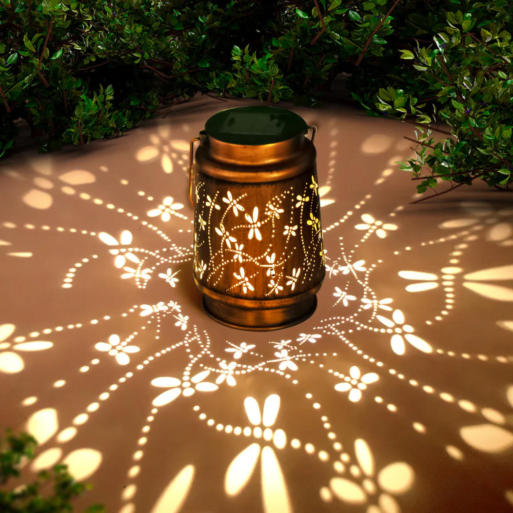 Stimmungsvolle Solar Gartenlaterne für warmes Lichtmuster am Abend